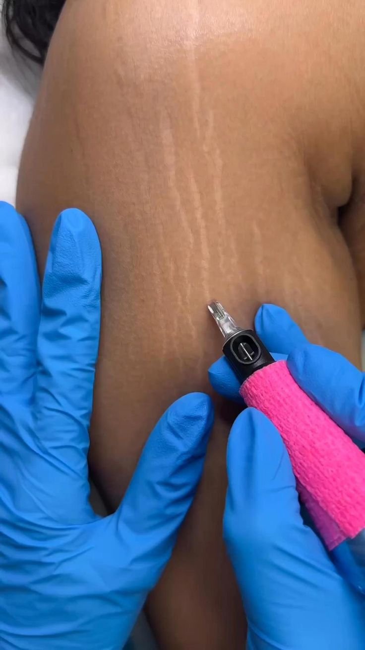A technique designed to enhance the appearance of stretch marks by activating the skin's natural healing process. This treatment stimulates the production of new collagen and elastin fibers, helping to "rebuild" the damaged skin tissue responsible for creating the stretch marks. Using advanced technology, such as a specialized pen with fine needle clusters, the procedure precisely targets the affected areas while minimizing unnecessary tissue trauma often associated with traditional microneedling techniques.